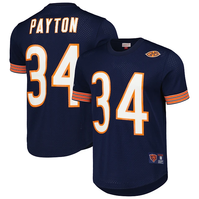 Mitchell & Ness Walter Payton pour hommes, bleu marine, Chicago Bears, nom et numéro du joueur retraité, haut en maille