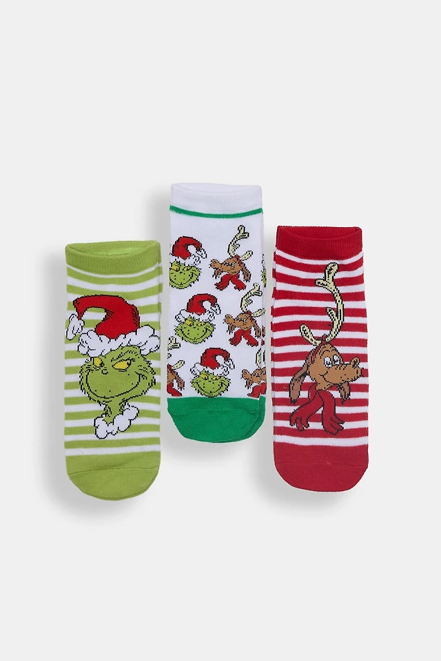 Lot de 3 chaussettes chevilles imprimées The Grinch