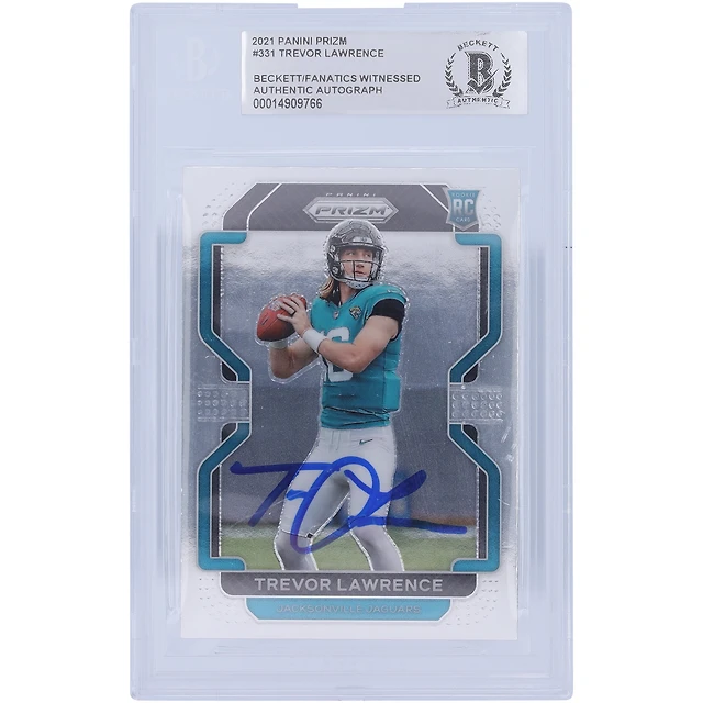 Trevor Lawrence Jacksonville Jaguars a autographié la nouvelle recrue Panini Prizm 2021 #NR-1 Beckett Fanatics a été témoin d'une carte de recrue authentifiée