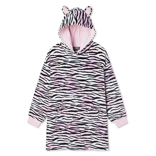 Hello Kitty Pyjama en peluche à manches longues pour fille avec capuche et fermeture à glissière et poignets confortables aux poignets et aux chevilles, pour empêcher la grenouillère de remonter