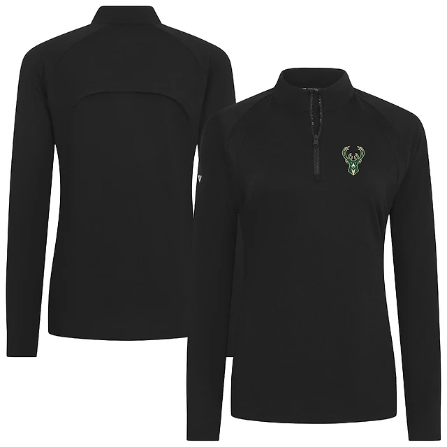 Haut noir à fermeture éclair quart de tour Flex Insignia 2.0 pour femme des Milwaukee Bucks Levelwear