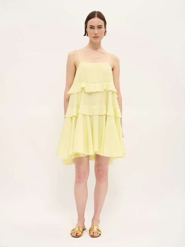 Mini-robe en coton à volants avec bordure dentelle contrastante