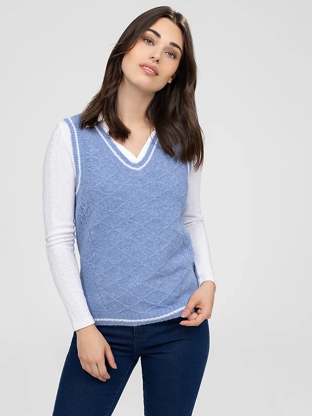 Cardigan boutonné avec blouse sans manches et jean étroit