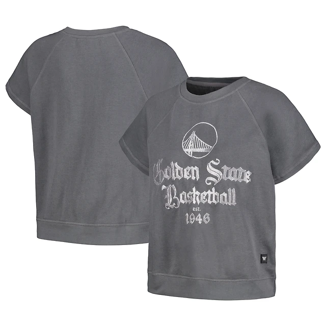 Sweat-shirt à manches courtes raglan en polaire brodée pour femmes The Wild Collective gris Golden State Warriors