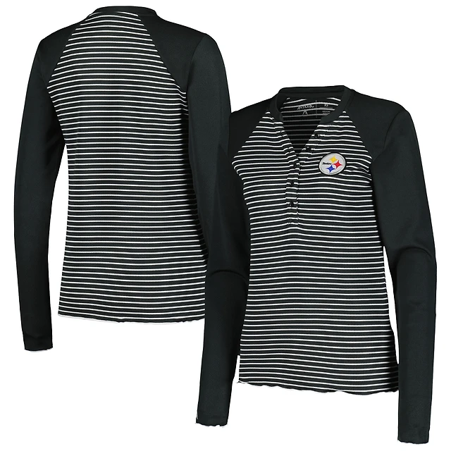 T-shirt Henley à manches longues Maverick Antigua Black pour femme des Milwaukee Bucks