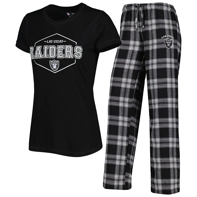 Ensemble de nuit grande taille pour femme Concepts Sport noir/gris avec haut et pantalon à écusson des Las Vegas Raiders