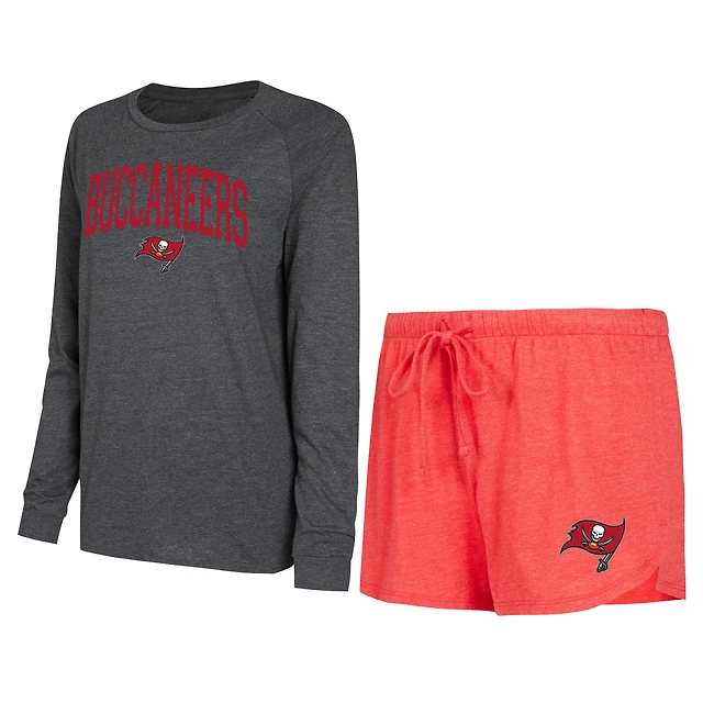 Ensemble de détente pour femme Concepts Sport rouge/noir Tampa Bay Buccaneers, haut à manches longues raglan et short