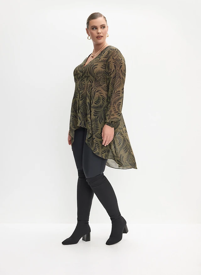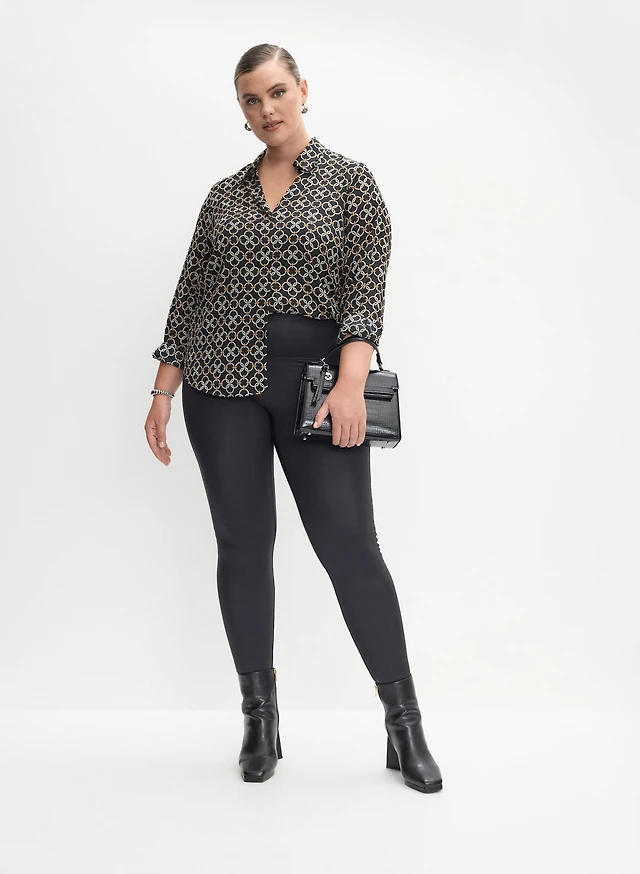 Blouse métallique à manches bouffantes et legging en cuir végane
