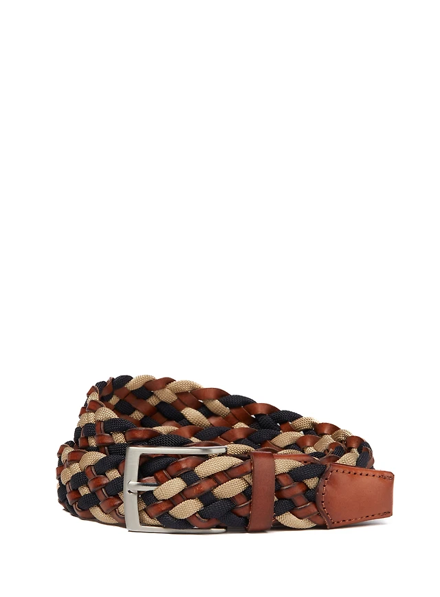Beige and Brown Braided Web Belt