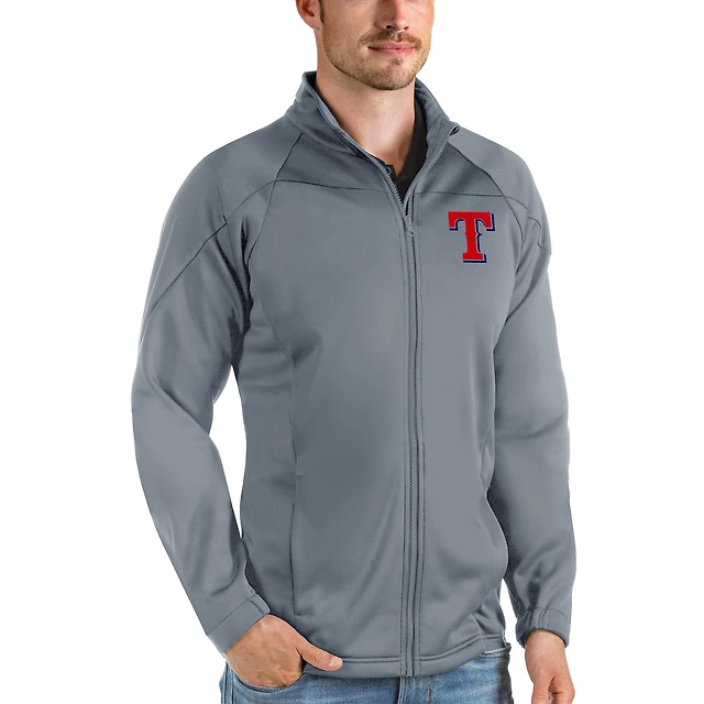 Men's Antigua Gray Texas Rangers Links Full-Zip Golf Jacket