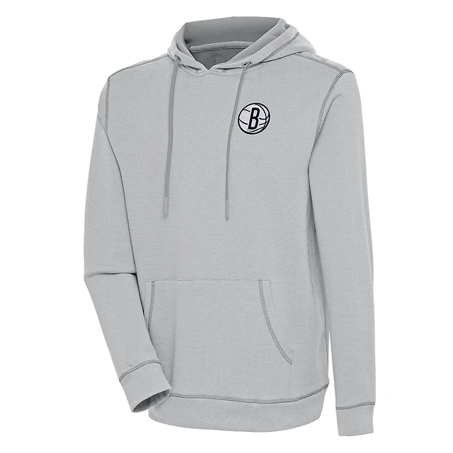 Men's Antigua Gray Brooklyn Nets Axe Bunker Tri-Blend Pullover Hoodie