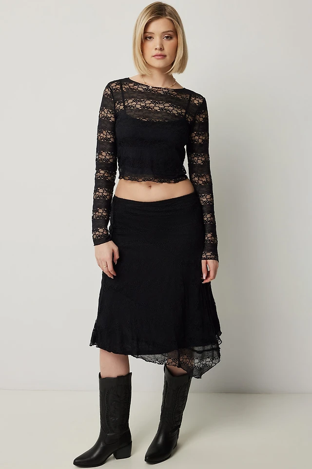 Ardene Lace Maxi Skirt in Black | Size XS | Polyester/Elastane/Polyamide