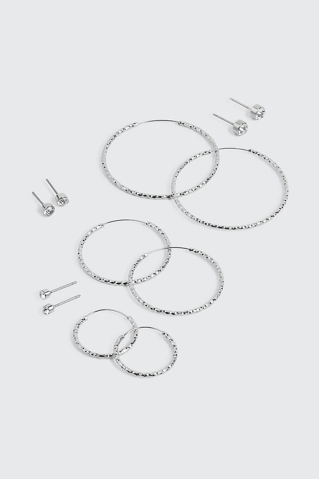 Ardene 6-Pack Hoop and Stud Earrings in Silver | Stainless Steel