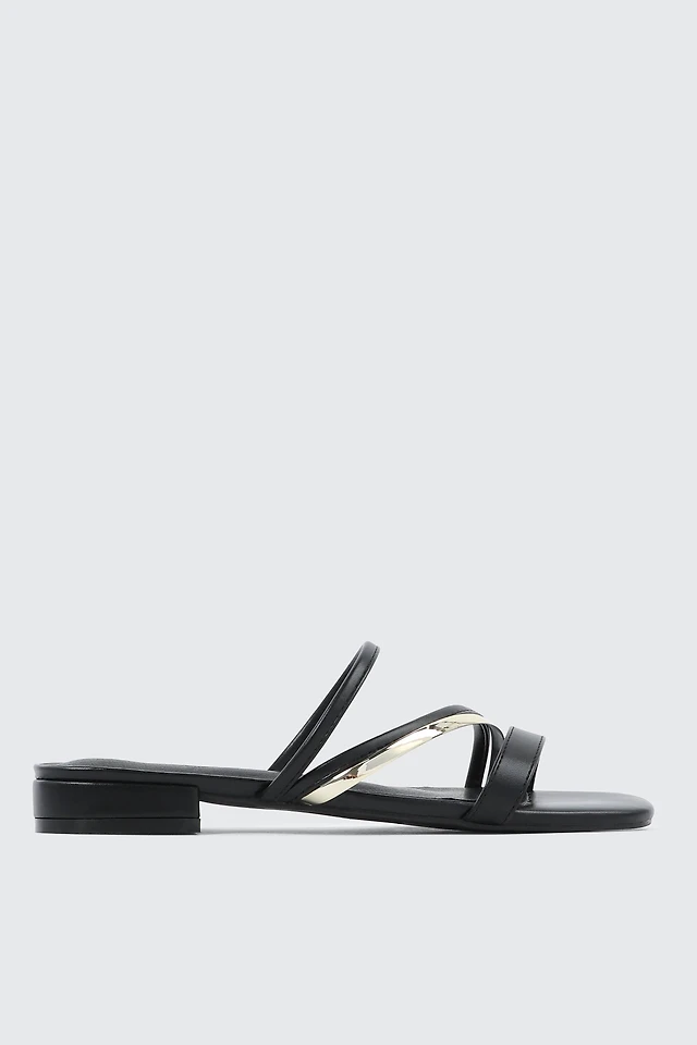 Ardene Low Heel Strappy Sandals in Black | Size | Faux Leather
