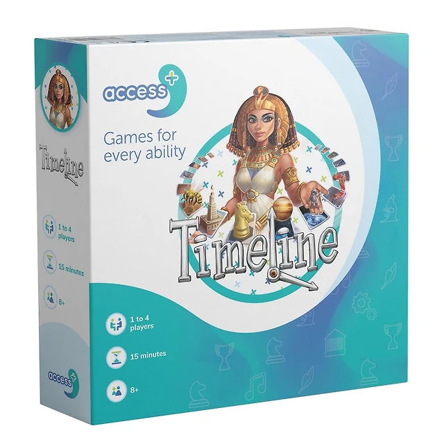TIMELINE - ACCESS + ENGLISH<br>Board game adapted by healthcare professionals for cognitive disorders ADHD and autism Intelligent game card for children and adults 8+ 1-4 players 15 min