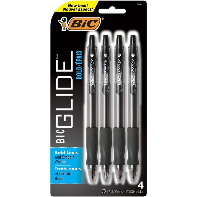 BIC GLIDETM/MC BOLD Retractable Ball Point Pen, Bold Point (1.6 mm), Black, Great For Everyday Use, 4-Count, Pack of 4