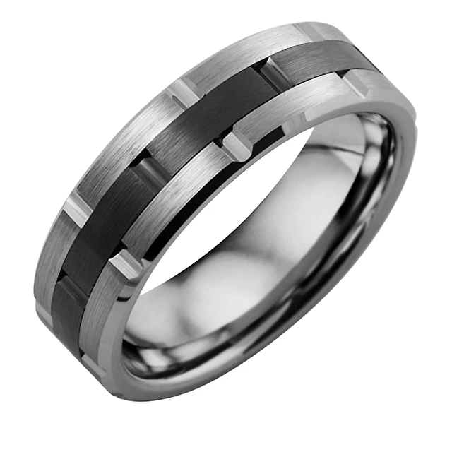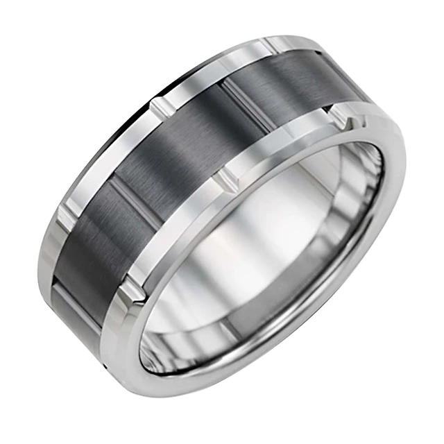 TUNGSTEN AND 10K WHITE GOLD RING 8M
