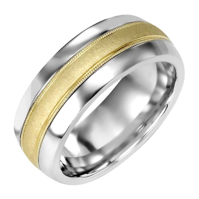 TUNGSTEN 2 TONE 10K GOLD RING 9MM