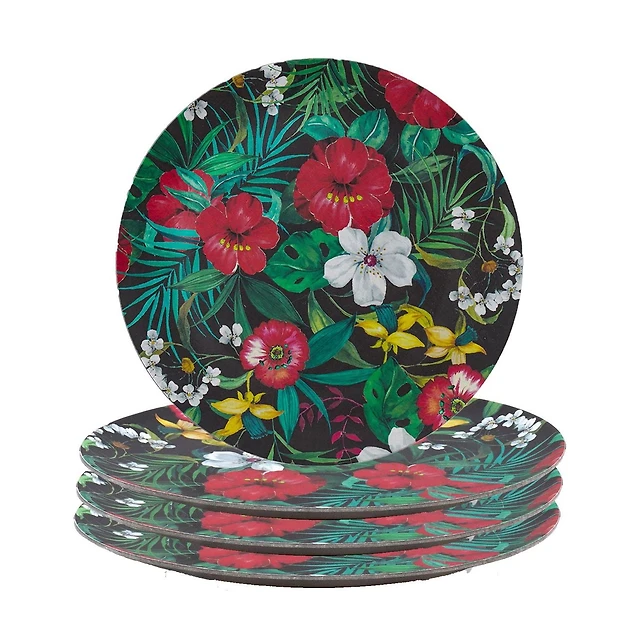 Bamboo Walnut Floral Plate 20 cm, Set of 4