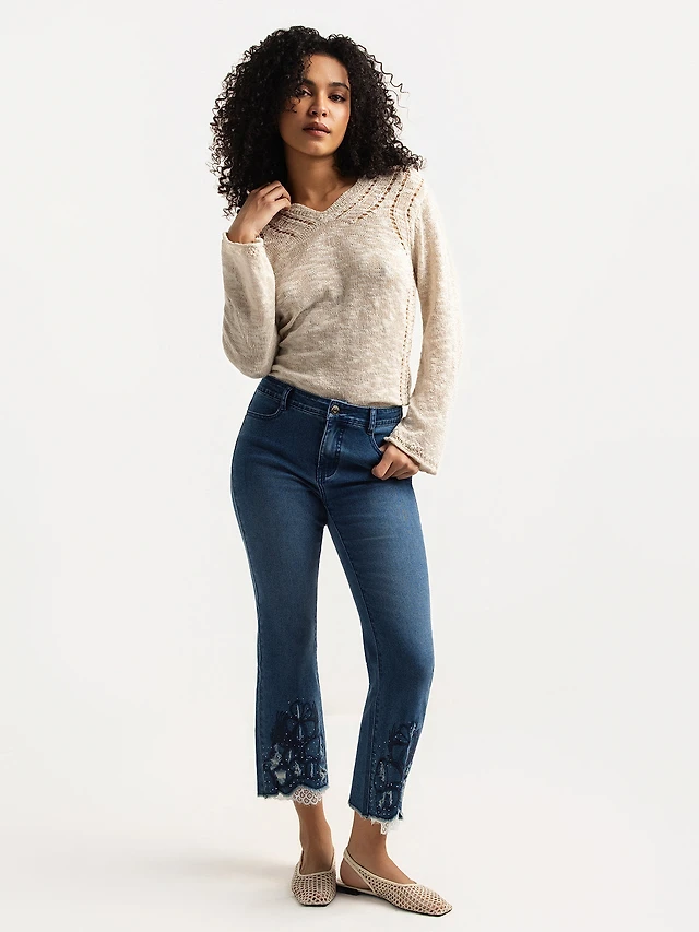 Semi-flared denim pants