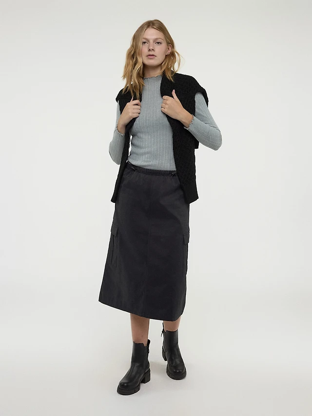 Pull on flared midi skirt