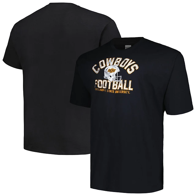 Men's Champion Black Oklahoma State Cowboys Big & Tall Football Helmet T-Shirt