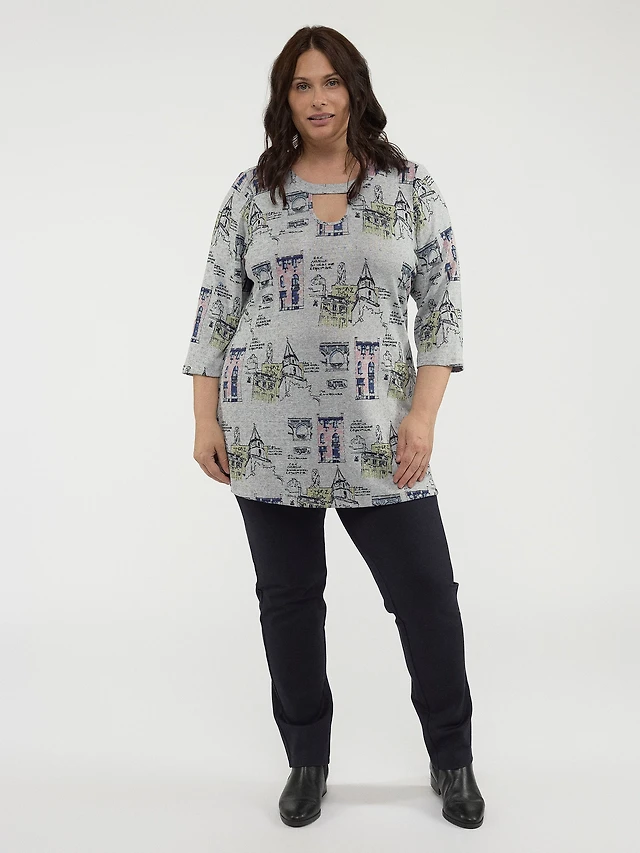 3/4-sleeve semi-fitted fooler tunic