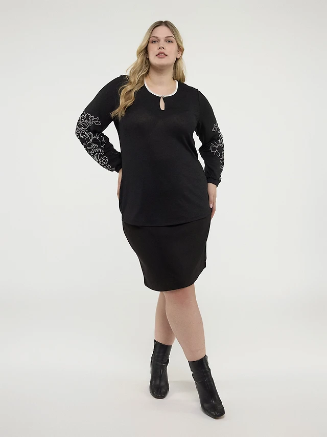 Long-sleeve semi-fitted knit tunic