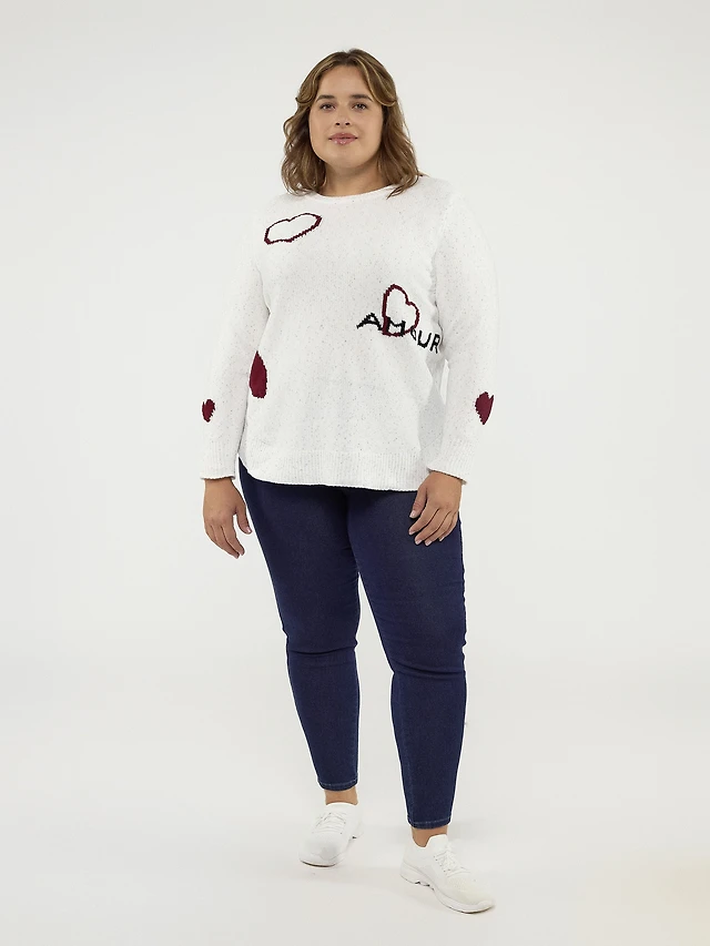 Long-sleeve semi-fitted pullover sweater