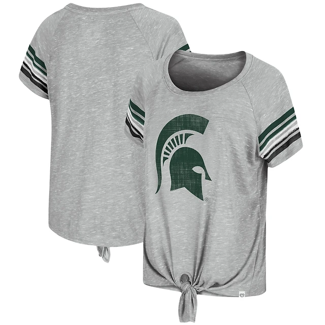 Women's Colosseum Heathered Gray Michigan State Spartans Boo You Knotted Raglan T-Shirt