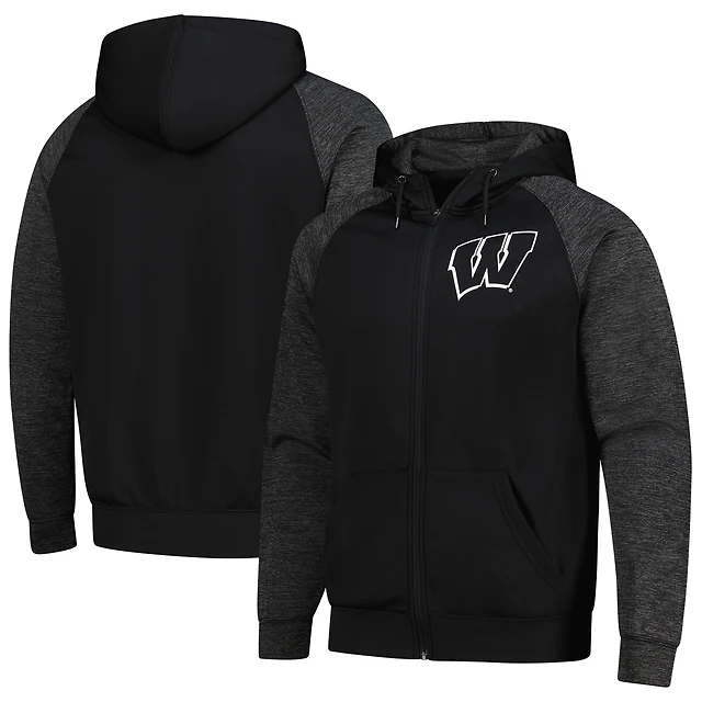 Men's Colosseum Black Wisconsin Badgers Blackout 3.0 Tonal Raglan Full-Zip Hoodie