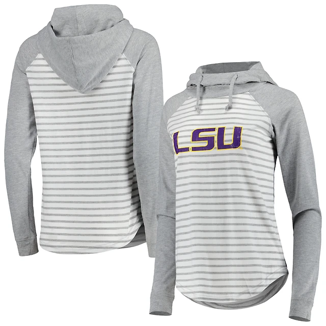 Women's Colosseum Heathered Gray/White LSU Tigers Gloria Raglan Long Sleeve Hoodie T-Shirt