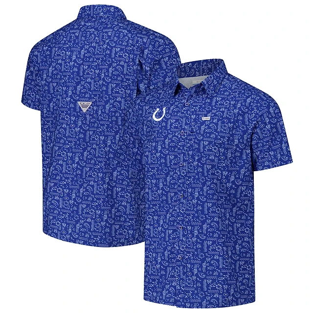 Men's Columbia PFG Royal Indianapolis Colts Super Slack Tide Omni-Wick Button-Up Shirt