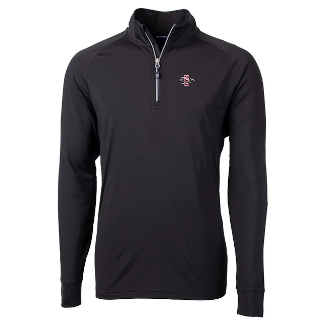 Men's Cutter & Buck Black San Diego State Aztecs Big Tall Adapt Eco Knit Quarter-Zip Pullover Jacket