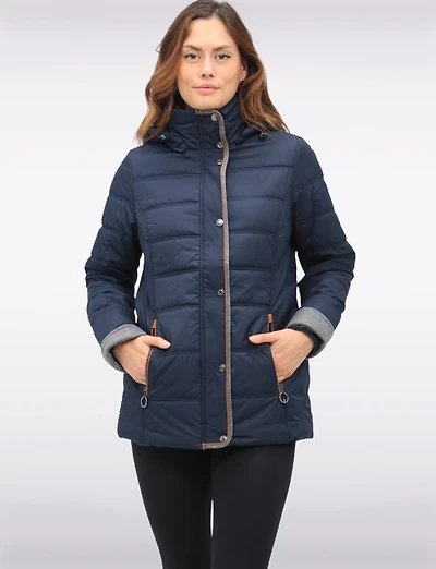 Quilted Jacket with Brown Trim Zip Front Pockets and Detachable Hood by Danwear