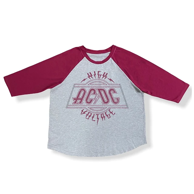 AC/DC Boys raglan tee. This boys long sleeve raglan tee shirt has a crew neck and can be worn with their favorite jeans and