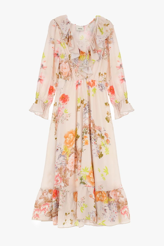 Floral Watercolor Cotton Blouse with Tassel Ties