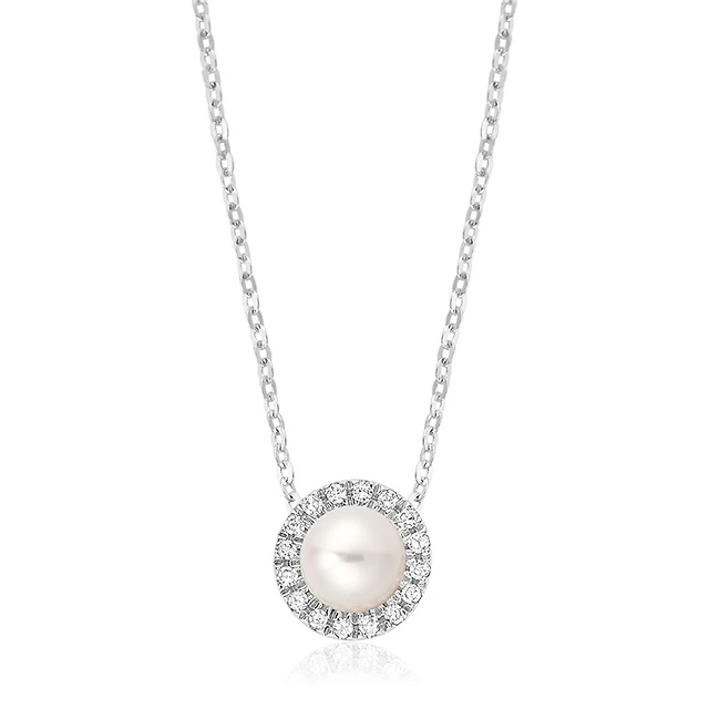 Women's Illusion Pendant Necklace, in 10k White Gold & Diamonds. Color: white | Doucet Latendresse