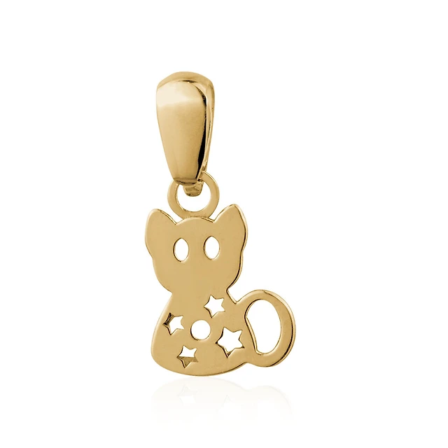 Pendant in the shape of a cat with star patterns in 10K yellow Gold. Color: yellow | Doucet Latendresse