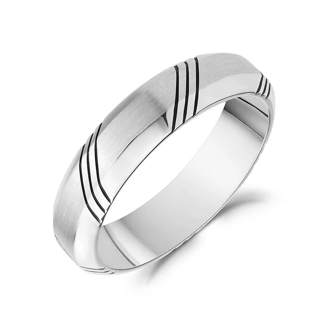 Stainless Steel 5mm Polished and Brushed Grooved Ring. Color: white | Doucet Latendresse