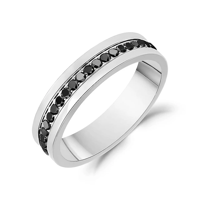 Stainless Steel 5mm Eternity Ring Set with Black Stones. Color: 2 tone | Doucet Latendresse
