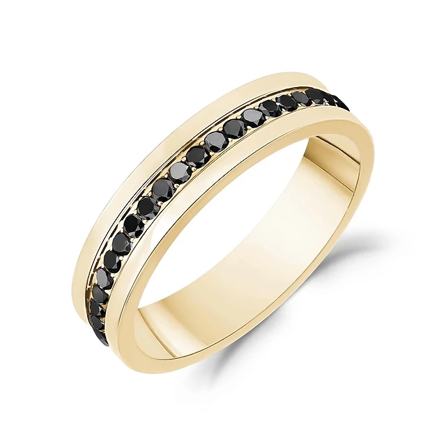 Gold Tone Stainless Steel 5mm Eternity Ring Set with Black Stones. Color: 2 tone | Doucet Latendresse