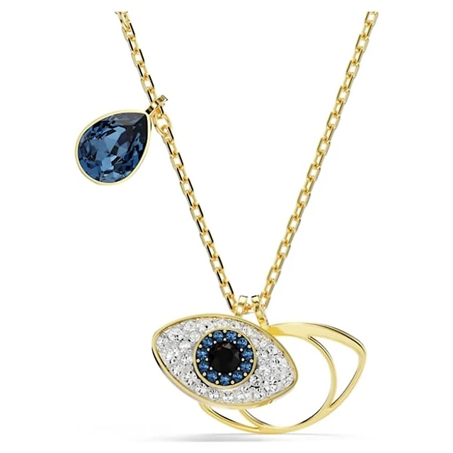 Gold Tone Crystal Evil Eye Drop Hoop Earrings. Color: yellow | Doucet Latendresse