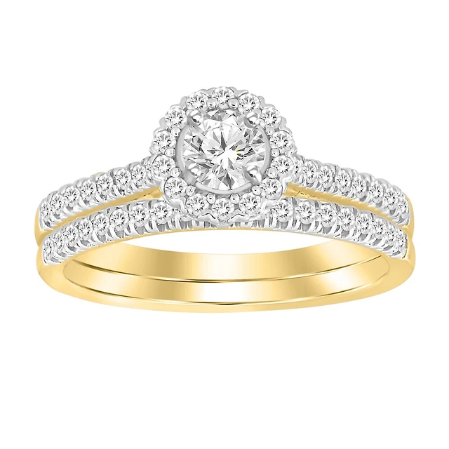 10K Gold Halo Wedding Band Set with Diamonds. Color: yellow | Doucet Latendresse