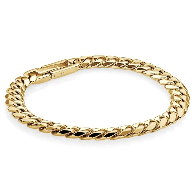 Polished Gold Stainless Steel Curb Bracelet - 8.5. Color: yellow | Doucet Latendresse