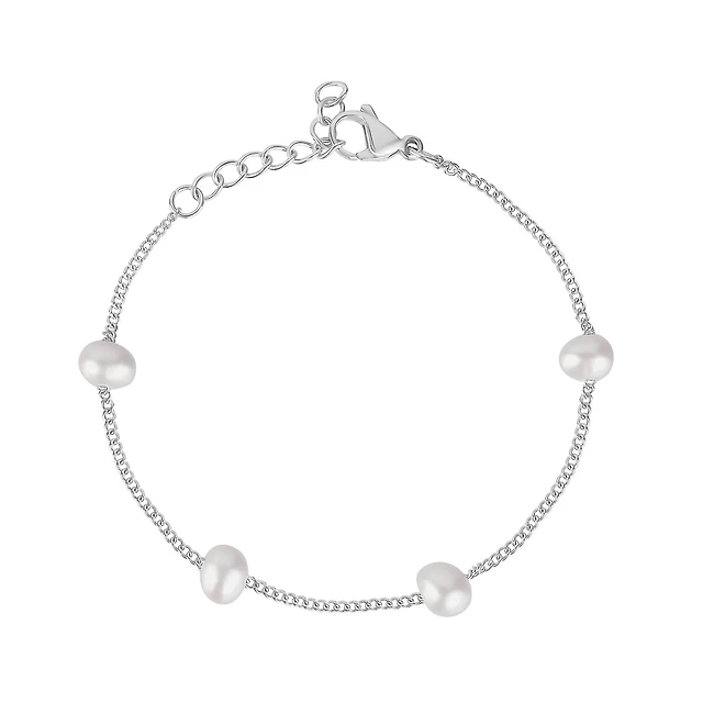 Stainless Steel Bead Station Link Bracelet. Color: white | Doucet Latendresse