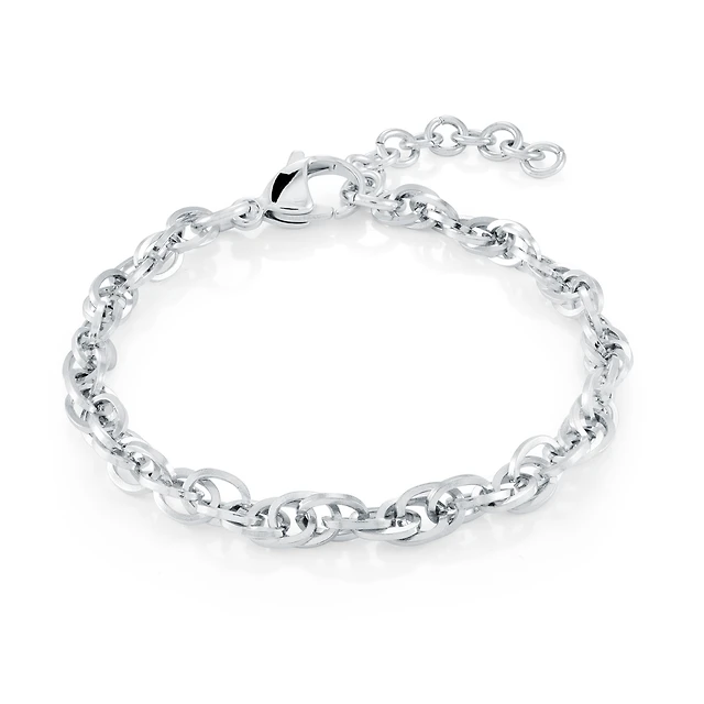 Sterling Silver Oval Links Bracelet with Rhodium Finish. Color: white | Doucet Latendresse