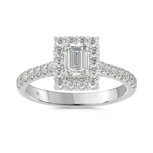 Halo Ring with Emerald Cut Lab-Created Diamond 14K white Gold. Color: | Doucet Latendresse