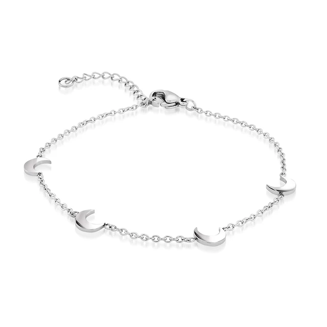 Stainless Steel Crescent Moon Charm Bracelet. Color: white | Doucet Latendresse
