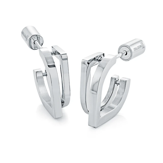 Stainless Steel Huggies with Faceted Design. Color: white | Doucet Latendresse